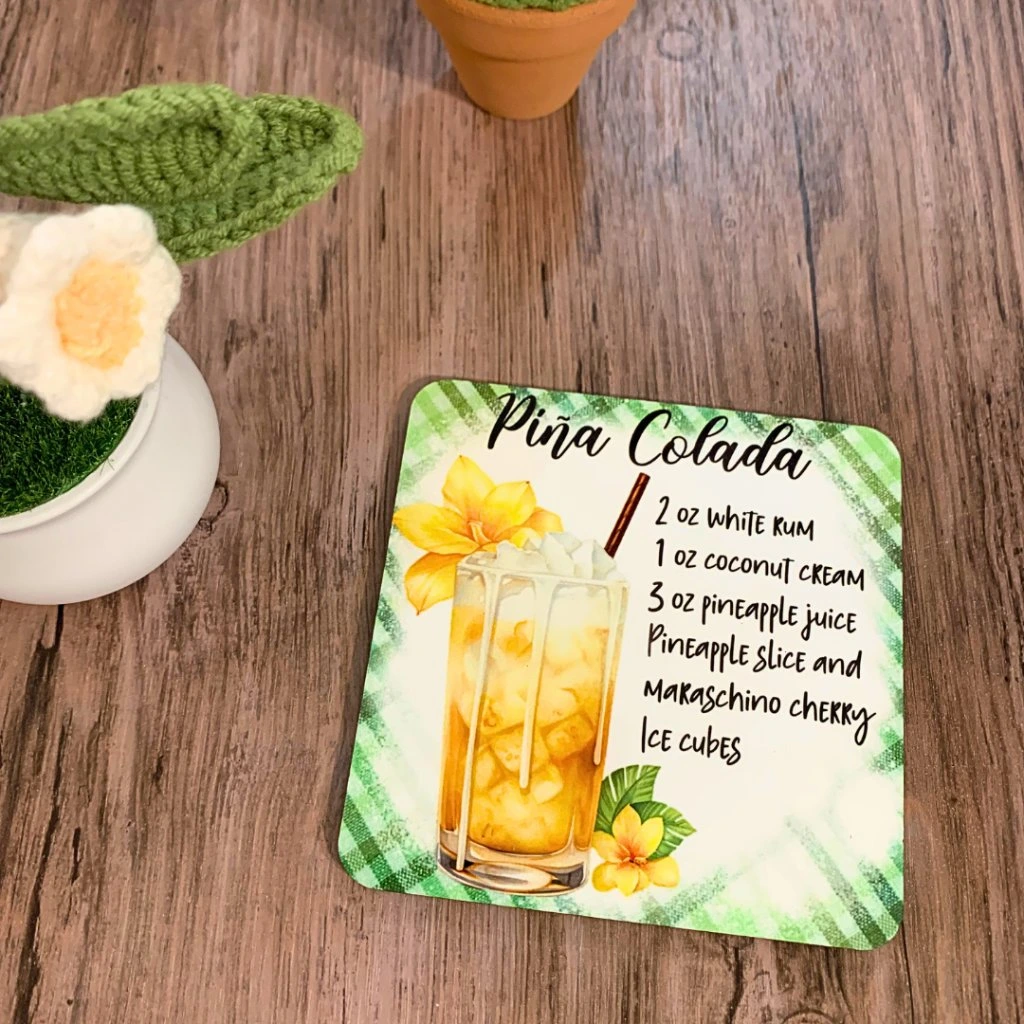 Podtácek s tropickým receptem na Piña Coladu.