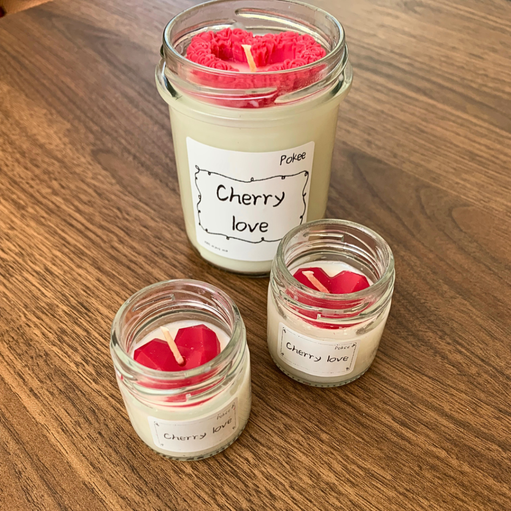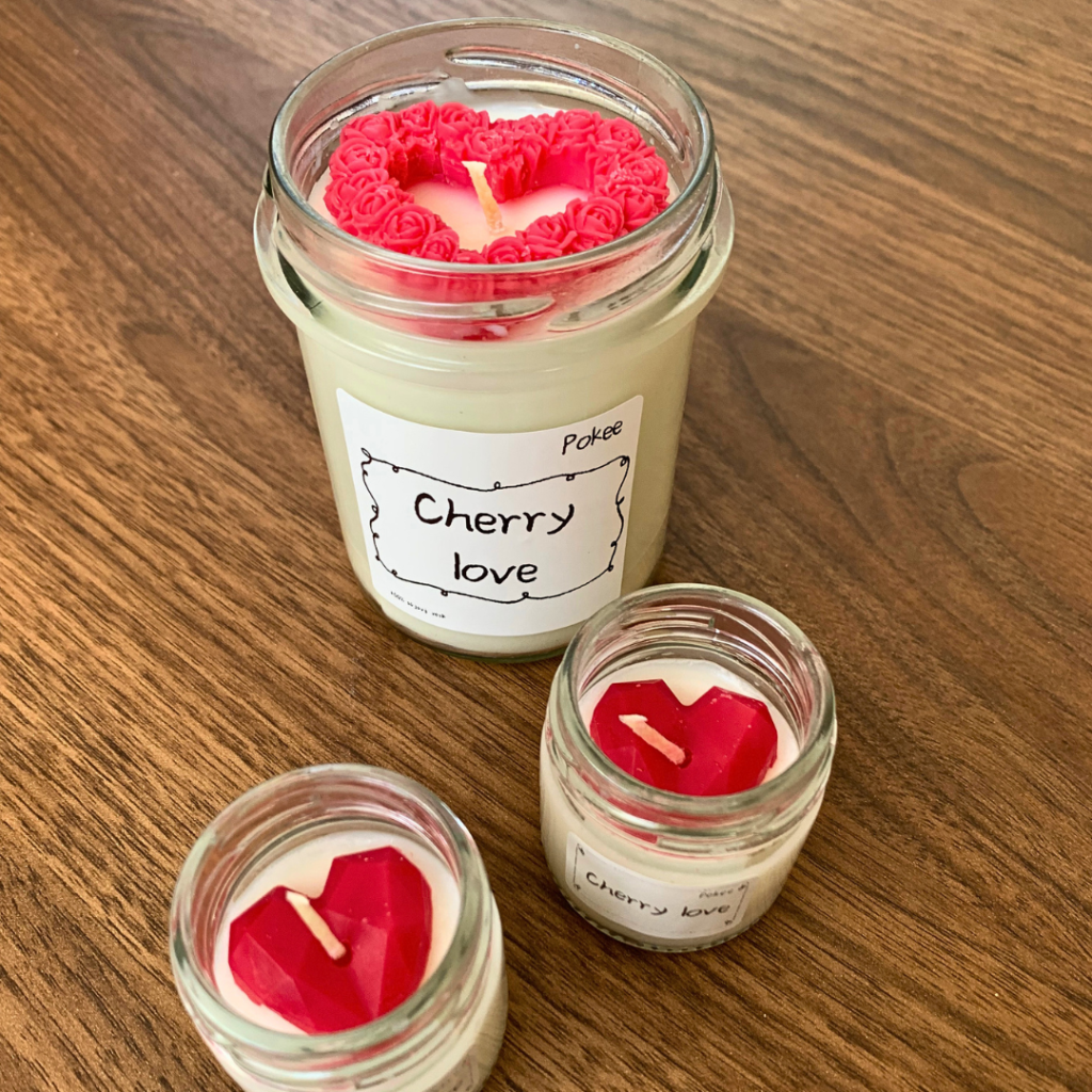 Malá sójová svíčka s třešňovou vůní a romantickým srdíčkem. Ideální jako dárek nebo stylový doplněk.