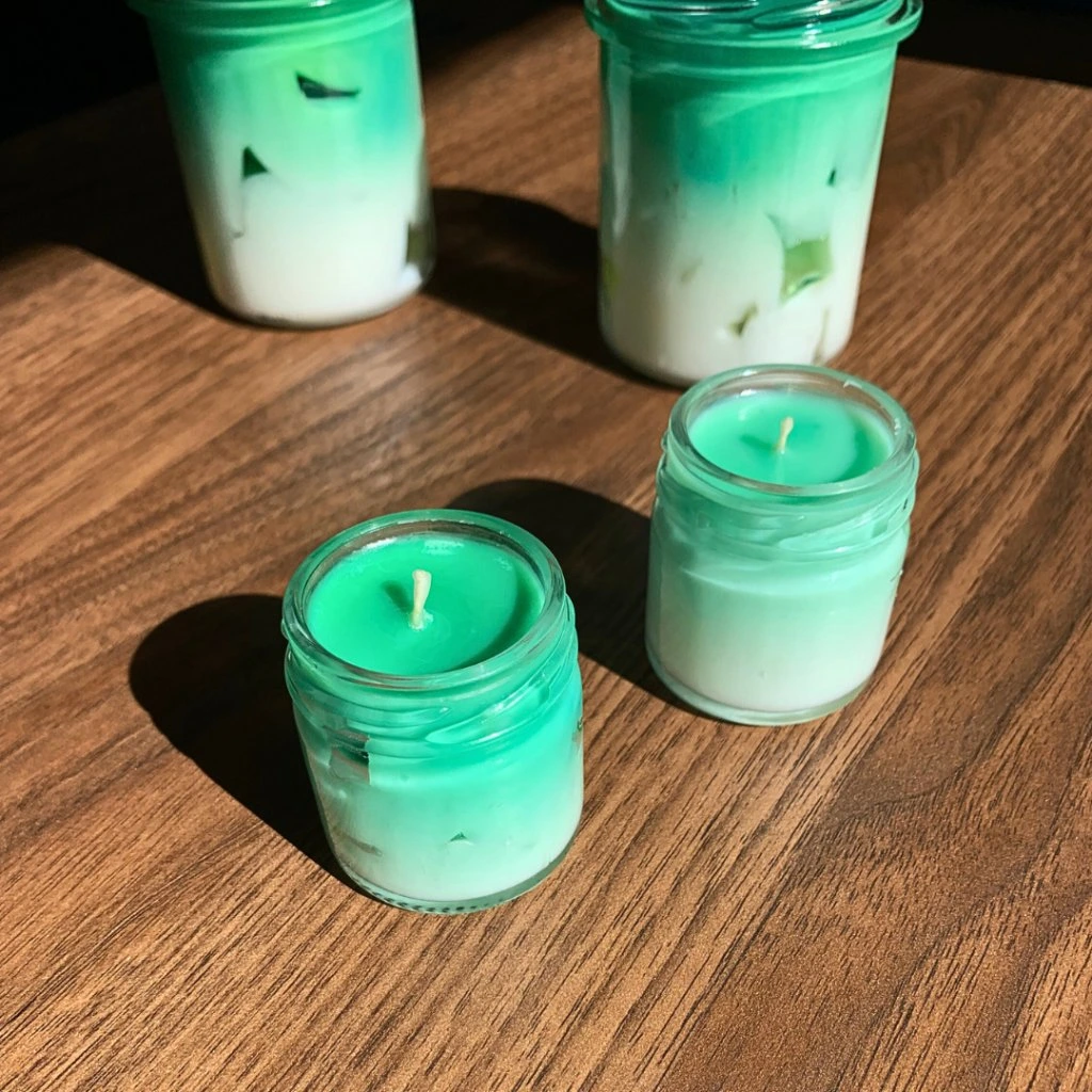 Svíčka - Malý ledový zelený čaj 40ml 100% sójový vosk, gelový vosk efekt ledu